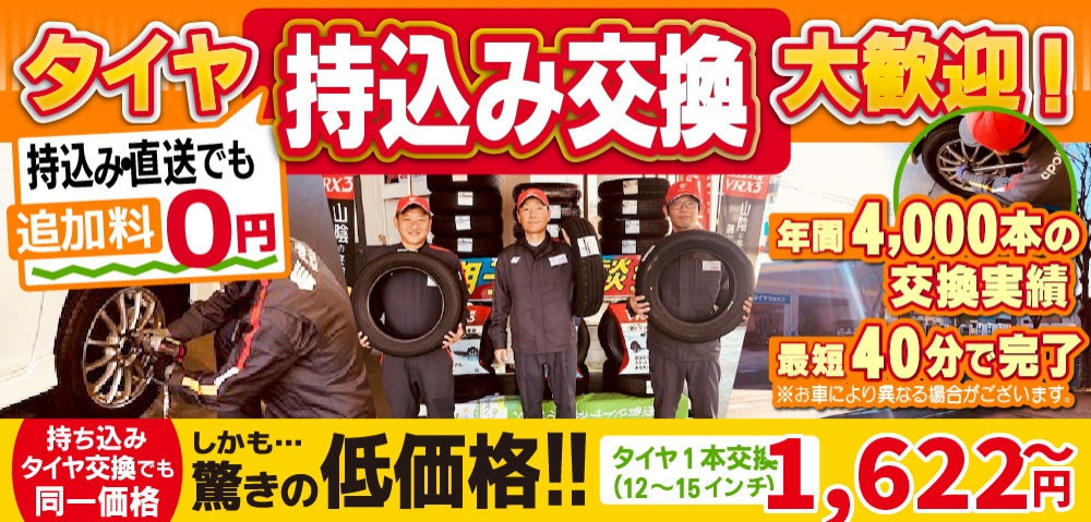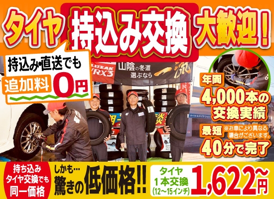 当店では、出雲・雲南エリア最安値帯の価格でタイヤ交換を実施しています。